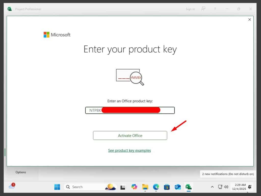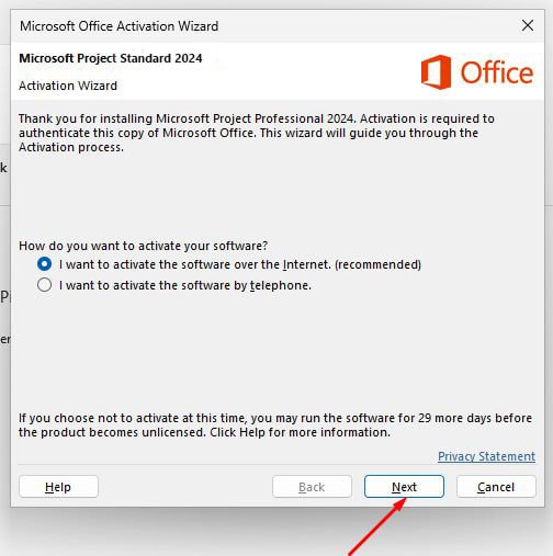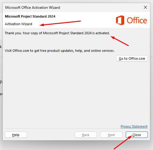 - Voer de activeringssleutel in die u per e-mail hebt ontvangen en volg de instructies. Uw exemplaar van Project 2024 is nu geactiveerd.