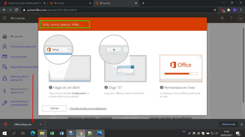 After you have chosen all the desired options, click on “Install Microsoft Office.”